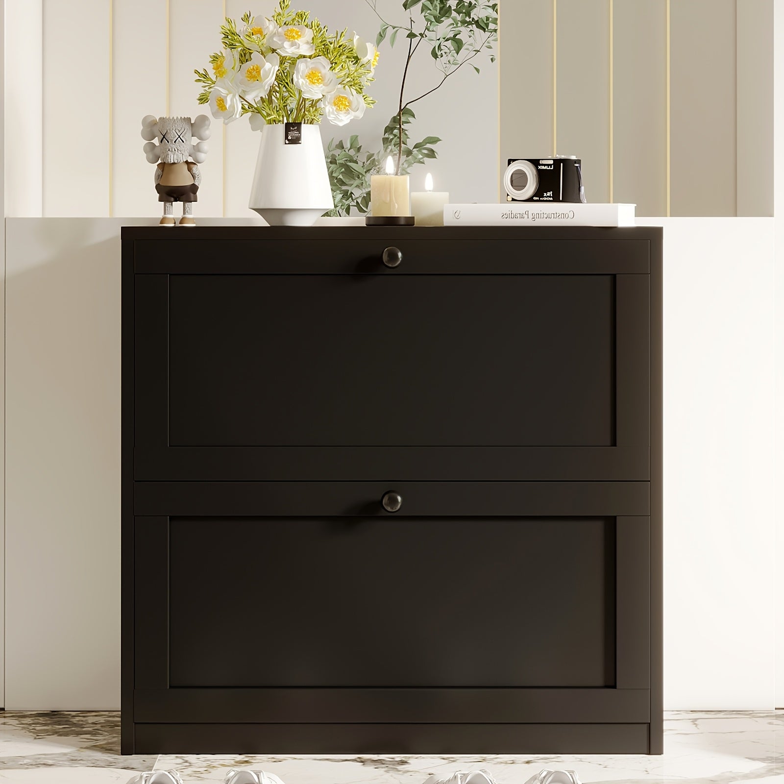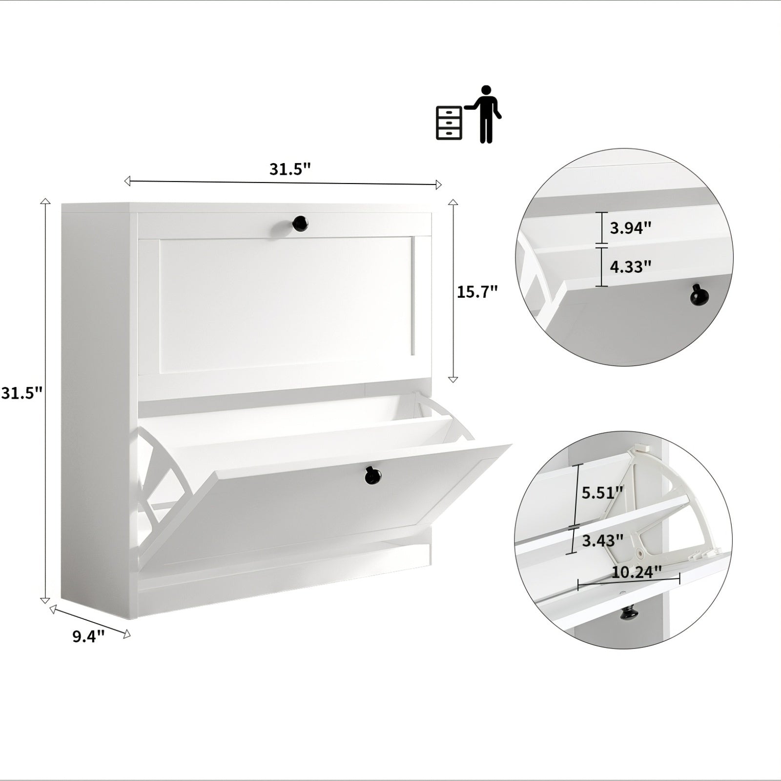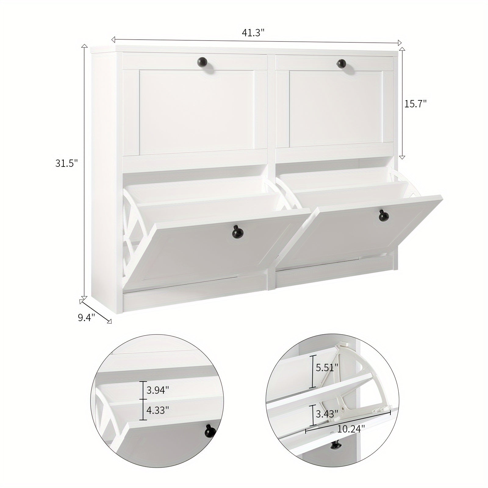 [31.5" White Shoe Rack] 2/3 Flip Drawers 31.5" White Wooden Modern Shoe Rack | Entryway, Hallway, Living Room, Bedroom Storage Organizer | Perfect Holiday Gift for Home Organization