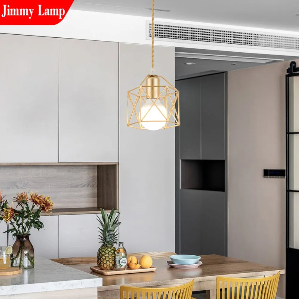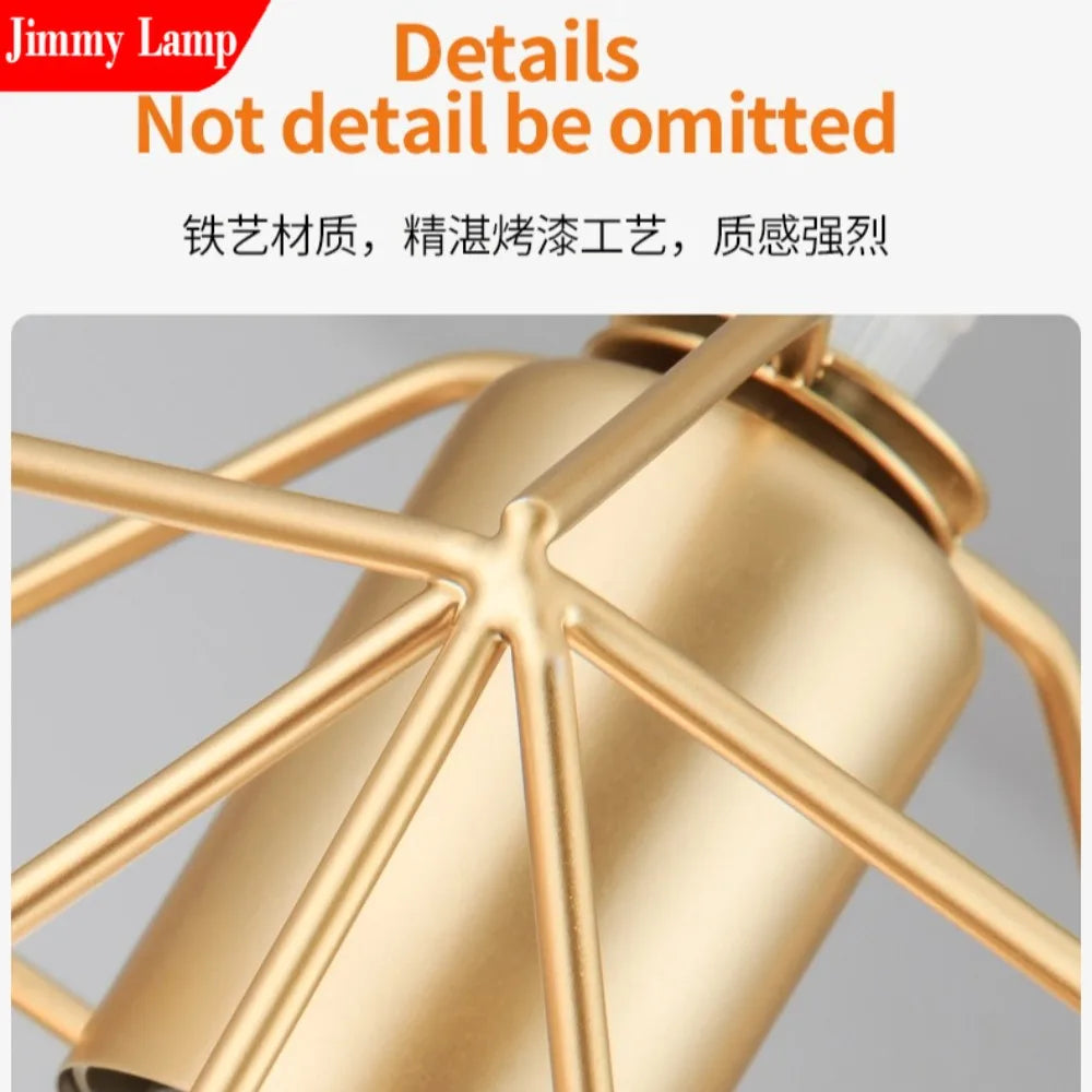 Nordic Iron Art E27 LED Golden Pendant Light Bar Bedroom Study Living Room Bedroom Bedside