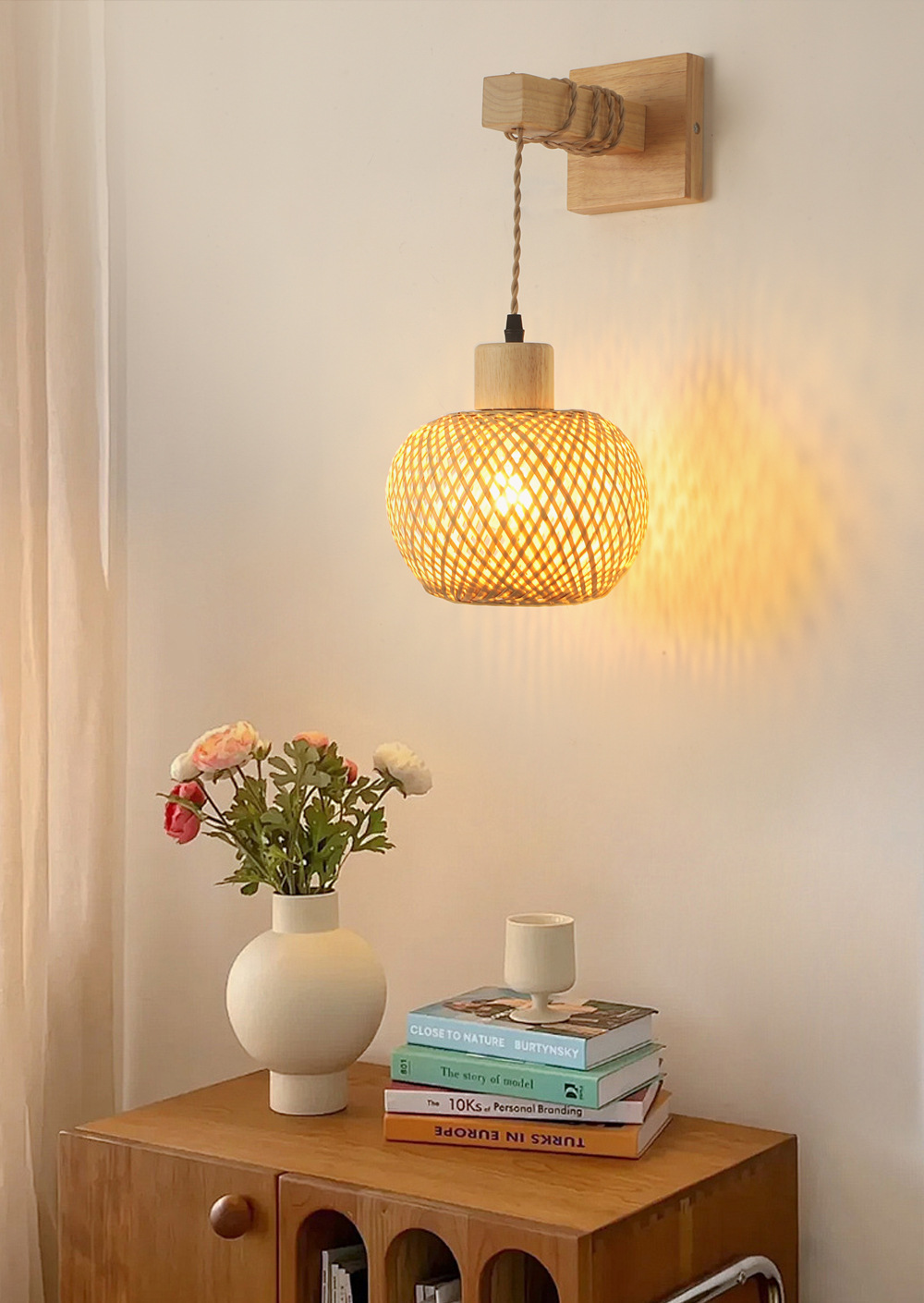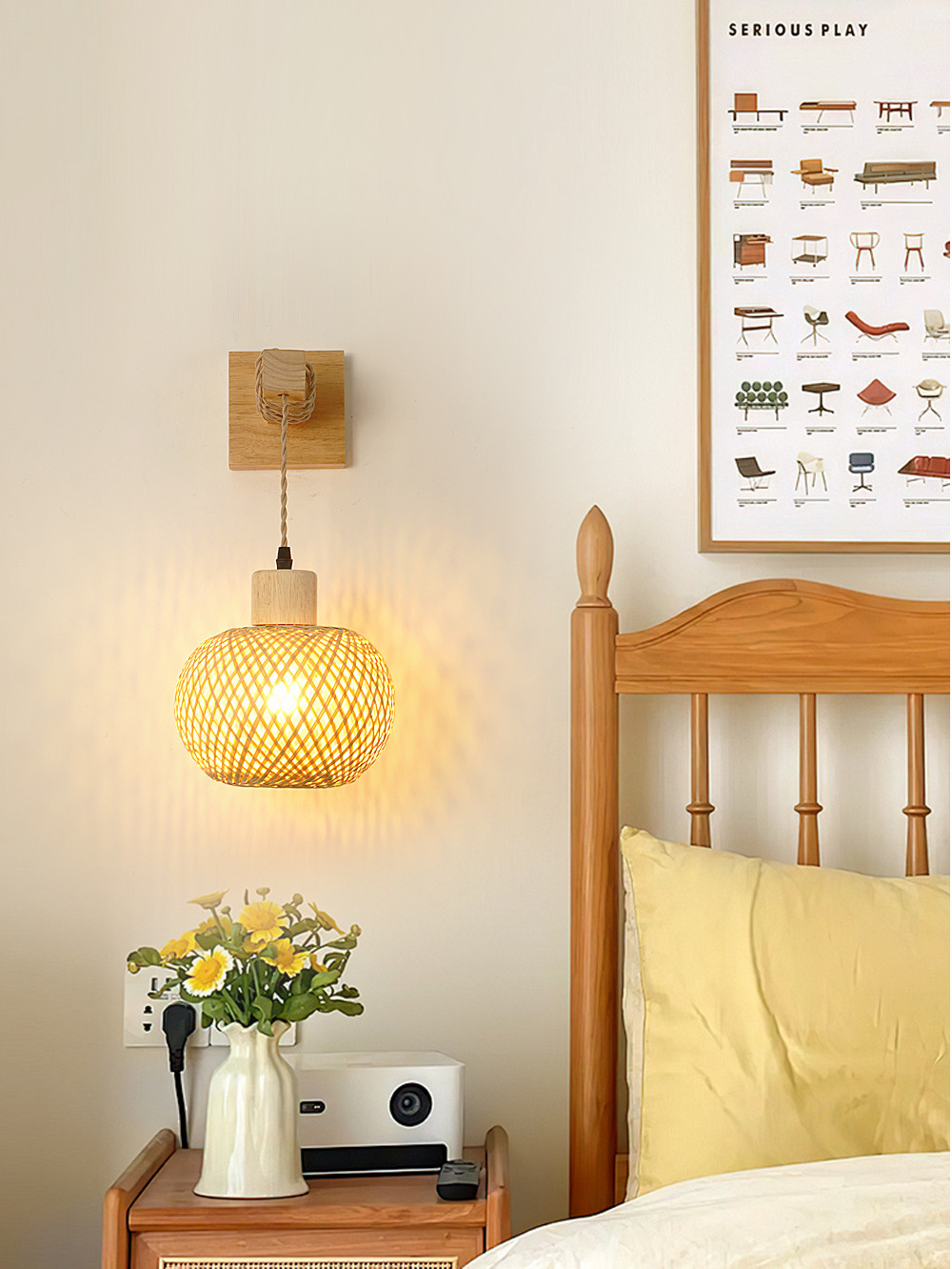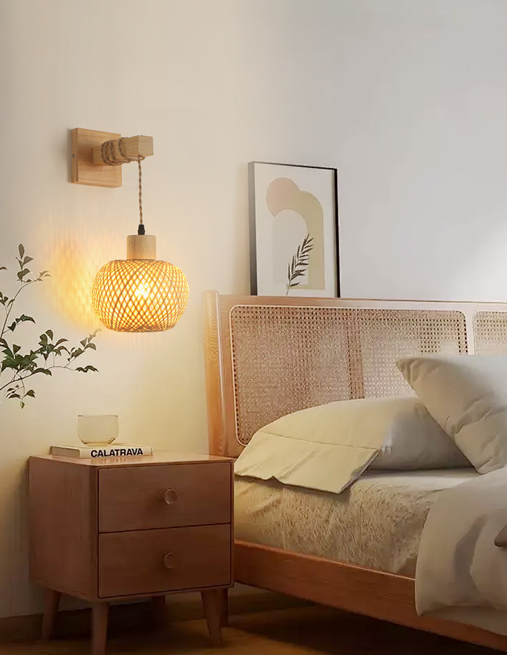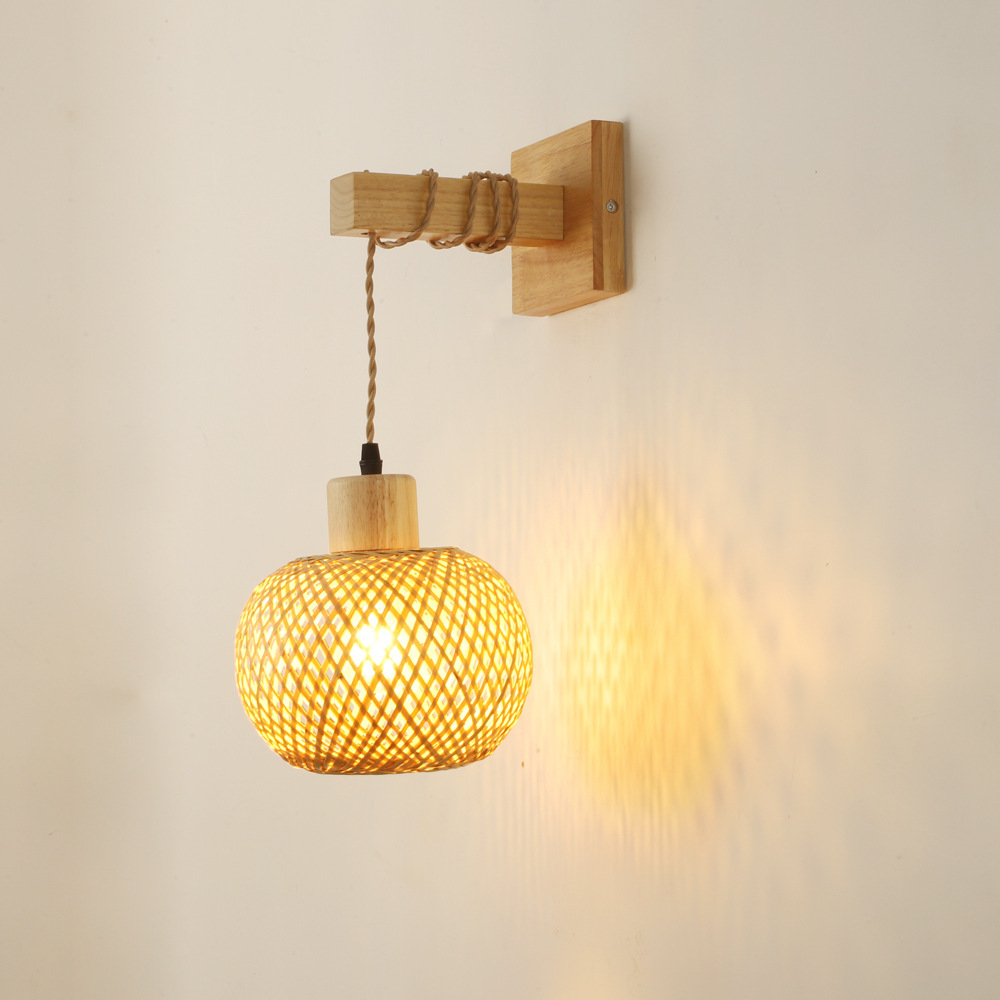 Retro Japanese Style Bamboo Wall Lamp Restaurant Rattan Lighting Bedside Bedroom Farmhouse Country Interior Background Wall Lamp